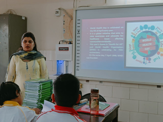 With a view to familiarize the children with the most recent theme taken up by World Health Organization for the year 2023 ' Health for all' a small presentation was shown to the students.